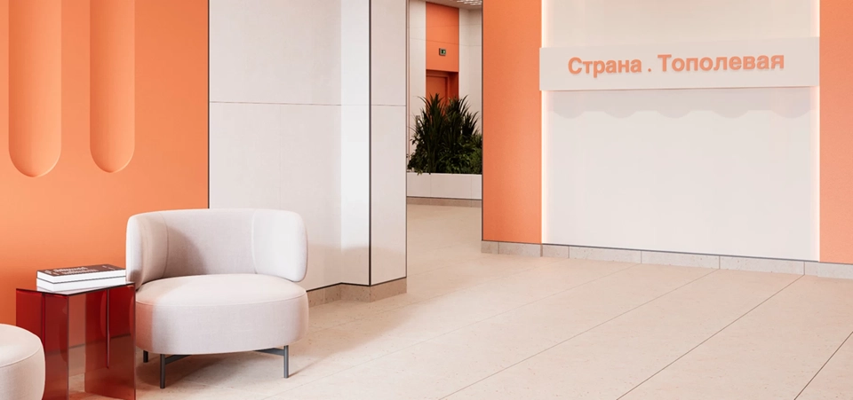 Страна.Тополевая - это новый жилой квартал в Октябрьском районе, где архитектура и комфорт образуют единую гармонию. Два корпуса переменной этажности формируют стильный ансамбль: уютный малоэтажный дом со спокойным двором и эффектная башня-доминанта с ярким силуэтом. Панорамные окна, мягкие оттенки фасадов и парадные с мягкой мебелью и живыми растениями создают ощущение современного и тёплого дома, куда приятно возвращаться каждый день