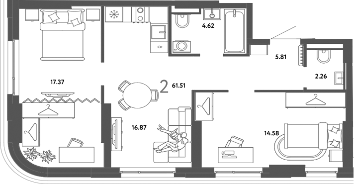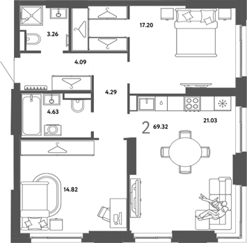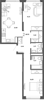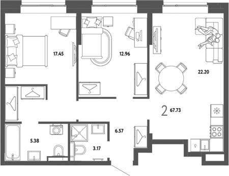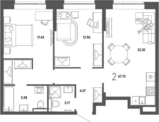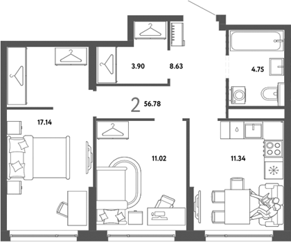 Площадь от 56.7 м2