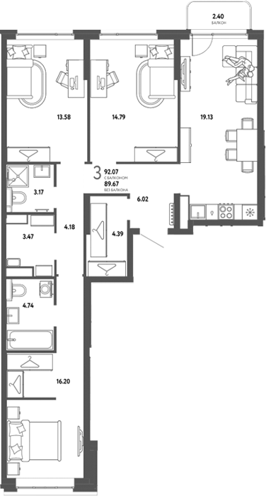 3-комнатные