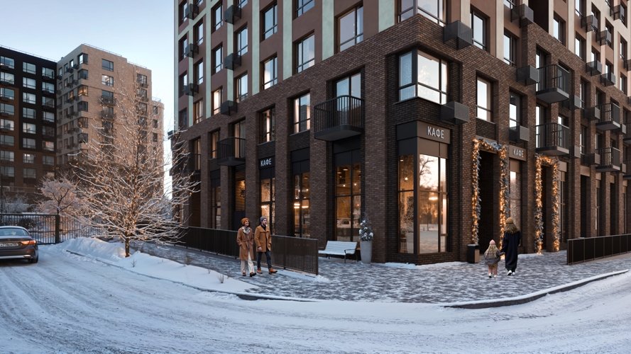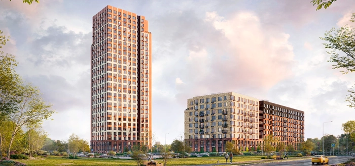 Два корпуса образуют выразительный квартал с акцентной башней и уютным малоэтажным домом. Такое сочетание создаёт разнообразие и уникальный облик жилого комплекса