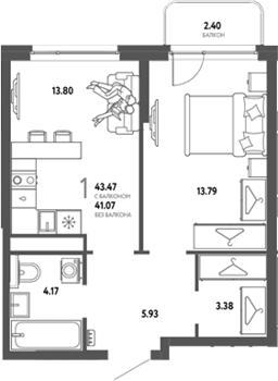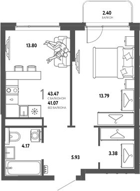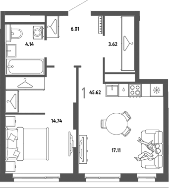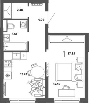 Площадь от 37.6 м2