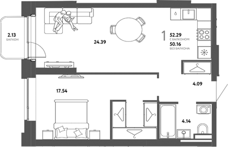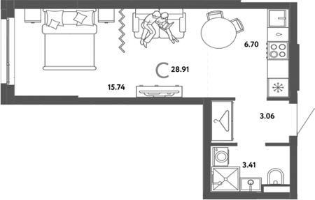 Площадь от 29.1 м2