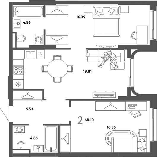 От студий до трёхкомнатных квартир, каждый найдёт вариант под свой стиль жизни. Высота потолков от 2,6 метров и увеличенные окна делают пространство светлым и комфортным