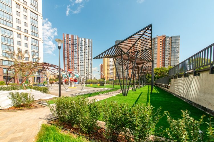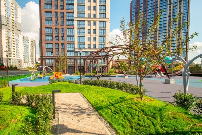 Закрытая территория комплекса дополнена прогулочной зоной с променадом, современными спортивными площадками и детскими игровыми зонами для разных возрастов. Это место, где есть время и для активности, и для отдыха