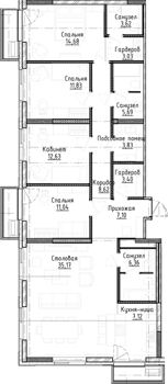 Площадь от 34.9 м2