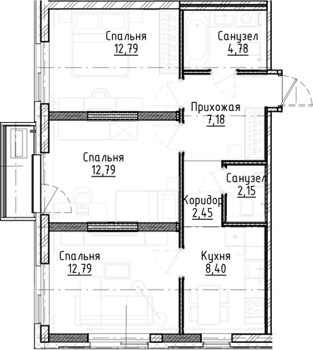 Площадь от 71.1 м2