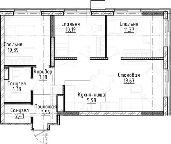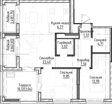 Площадь от 59.1 м2