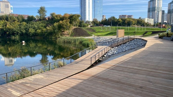 Озеро Верховое становится сердцем проекта: его благоустраивают, создают круговой маршрут, зоны отдыха, ручьи, фонтан и водные игровые зоны. Прогулка у воды - это не формат "выехать в выходные", а часть ежедневной жизни.