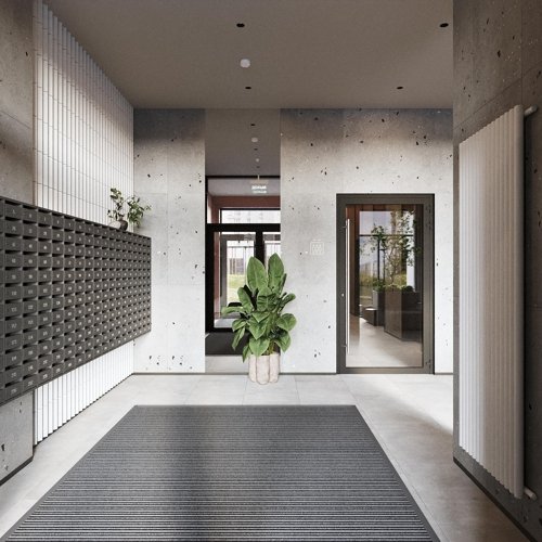 Двухуровневый паркинг оформлен как полноценная welcome-зона: аккуратный свет, выделенные входы, логичная навигация. Из паркинга можно подняться прямо на свой этаж, не попадая на улицу - это важная деталь в сибирских реалиях