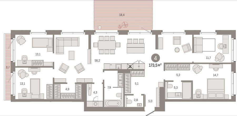 В проекте представлены квартиры от студий до четырёхкомнатных, включая редкие форматы с террасами и ориентацией на две стороны света. Потолки до 2,95 м создают ощущение пространства, а панорамные окна наполняют квартиры светом и делают любую планировку визуально шире и воздушнее