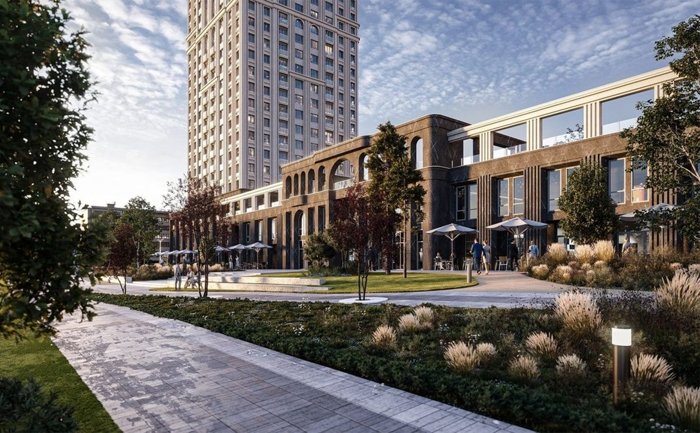 На уровне города формируется галерея с ресторанами, кофейнями, супермаркетом, салоном красоты и фитнесом. Это добавляет городской динамики, а жителям позволяет жить по принципу "всё рядом"