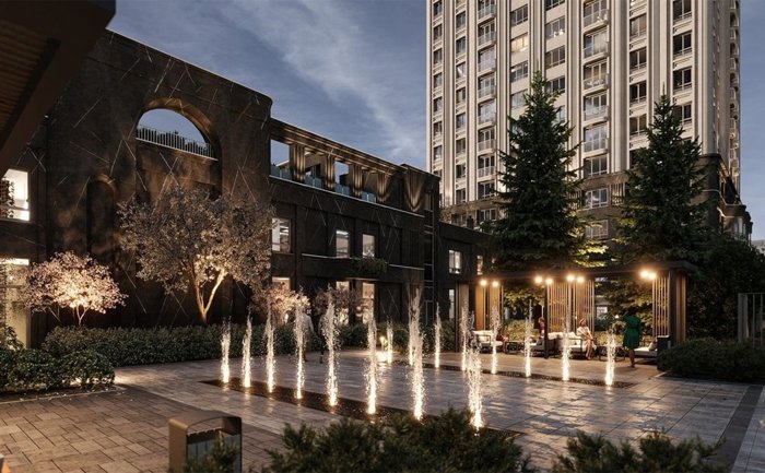 Закрытая внутренняя территория с фонтаном, зонами отдыха для взрослых и современными детскими площадками. Здесь спокойствие встречается с комфортом
